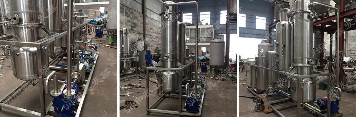 2、浓缩液料: 本设备采用外加热自然循环与真空负压蒸发相结合的方式,蒸发速度快,浓缩比可达1.3。料液在全密封状态无泡沫浓缩,浓缩出来的药液,具有没污染,药味浓的特点。