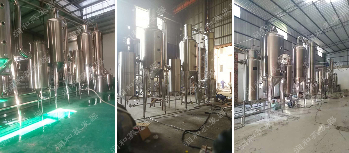 各效分汽缸、加热器、各效蒸发分离器、冷凝器(混合式或表面式)、各效强制循环泵、各种料液输送泵、真空泵、冷凝水泵、操作平台、电器 仪表控制柜及界内管道阀门等组成。