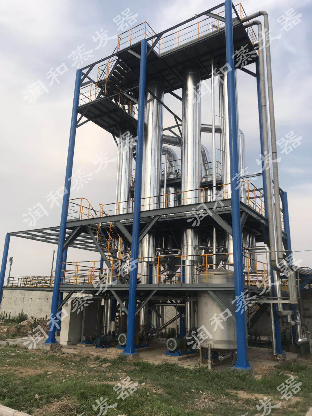本设备由各效加热器、各效蒸发分离器、冷凝器(混合式或表面式)、各效强制循环泵、各种料液输送泵、真空泵、冷凝水泵、操作平台、电器仪表控制柜及界内管道阀门等组成。